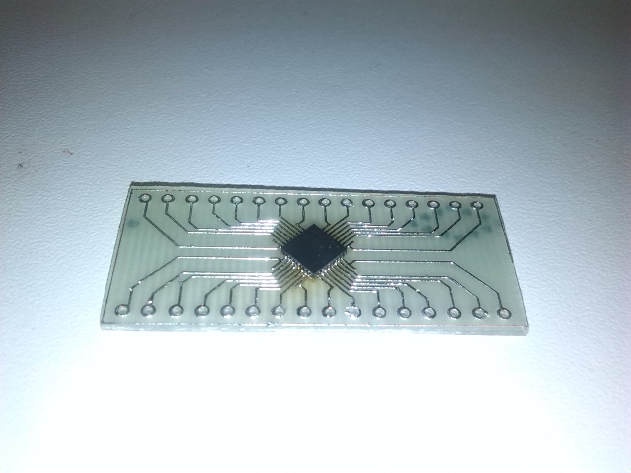 Nekem anno 1995-96 környékén egy bankkártya felére (!) ami kábé 22 négyzet cm, kellett rátervezni 6 db 14 lábú smd cmos ic-t 1 db 28 lábú (kocka) smd flash romot (tokban persze) plusz jött hozzá egy 8-as dil kapcsoló (funkciók) Vért izzadtam, de megrajzoltam a prototipust kézzel, alkoholos tűfilccel. Lett belőle valamennyi sorozatgyártás, fotólakkal. Két helyen kellett smd lábak közt elvinnem fóliát, szerencsére sikerült a nem használt lábaknál, ezeket letörtem (nem túl elegáns de cserébe működik) illetve egyetlen erőteljes vonalat húztam a fotópapíron, ott ahol két vezetősáv ment volna, amit aztán előhívás után kellett a nyákon óvatosan pengével 2 vezetősávra szétválasztani. Ha maratás után jutott eszembe, az már szívás volt. A hozzászólás módosítva: Feb 26, 2014