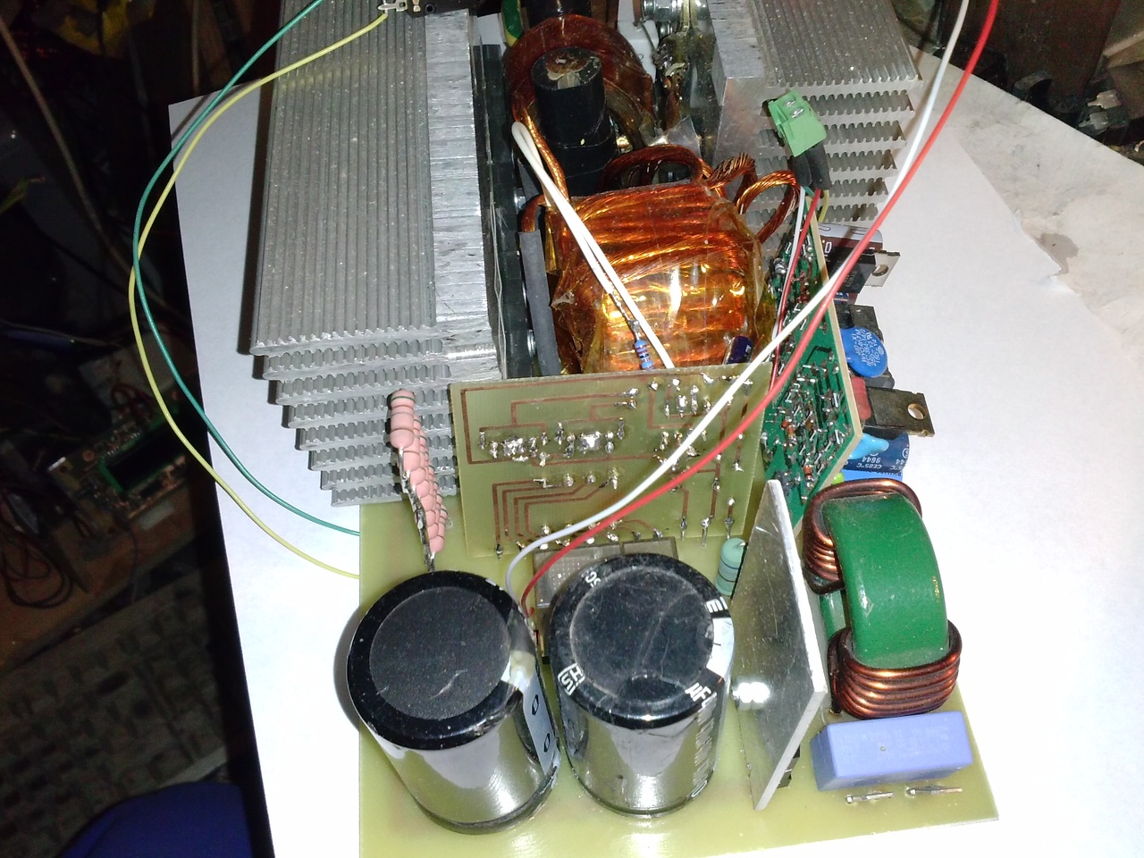 Szia katt.Kapton a szalag,elvileg sok hőfok és sok feszt bír.A kivezetések még kapnak zsugor csövet,itt még a próba volt hogy minden OK.Litze,nincs arra pénzük az embereknek,marad a házi litze.