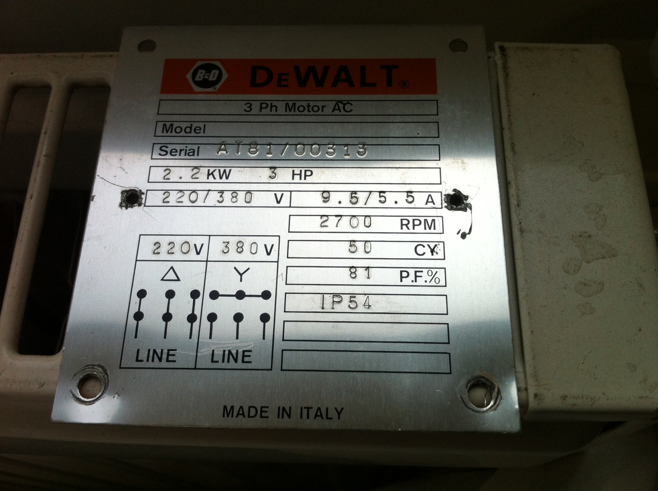 Egy körfűrészt most újítottunk fel,új asztal,csapágyazás stb...... sajnos csak 1 fázisom van,és egy 220as 2.2Kwos motorom,ami ugyan szépen hajtja a 300as lapot,de szeretnék rá egy 400asat venni,és azzal már gyengélkedne.220asból sajna nem találok seholsem olcsó 3 Kwos motort,,,,így arra jutottam hogy mi lenne ha egy 380ast kötnék át 220ra. Konkrétan én egy 5.5Kwos motort szemeltem ki,,,mert elvileg az a teljesítményének 2/3részét leadná,-3666w-ot,ami elég lenne.