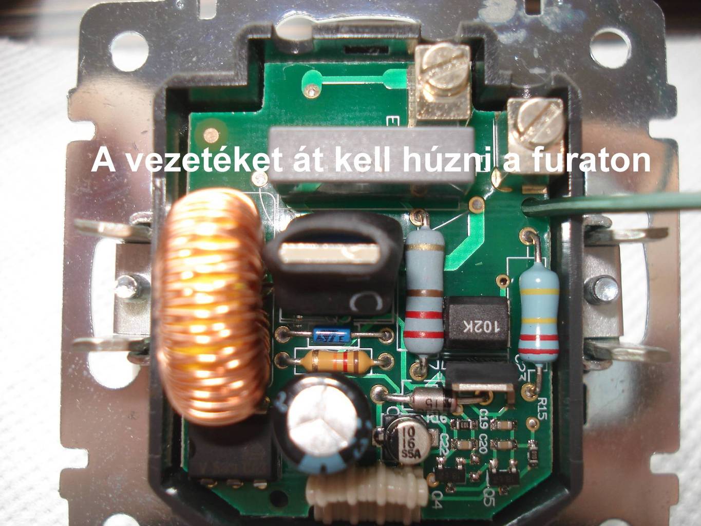 Vigyázat! Hálózati feszültségű cuccokat óvatosan szerelünk, kikapcsolt állapotban leginkább!