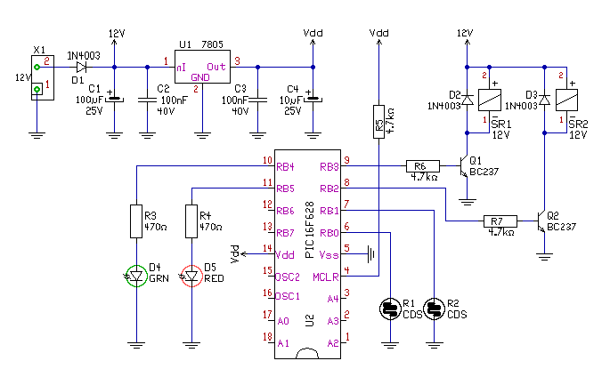 Természetesen csak kihagyod ami felesleges. Ha a PARSIC file-t felteszem, akkor a forráskódot is megnézheted benne. Bár ha nem vagy ASM-ben túl otthon, nem fogod érteni. De ez már itt gyakorlatilag Off-nak számít. A CDS ellenállások meglehetősen egyformák. Sötétben Mohm értékűek, világosban kohm nagyságrendre csökkennek. Én felhúzó ellenállás gyanánt a PIC belső felhúzó áramkörét használtam, de ha az érzékenység "túl jó" akkor a bemenet és az 5V közé tehetsz megfelelő értékű ellenállást. üdv! proli007