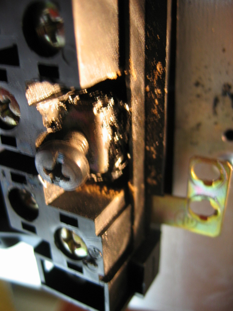 Érintkezési hiba miatt melegedett és ezért olvadt meg. Ha sima tömör vezeték és már oxidálódik, az is melegszik és képes így felégni a szigetelés. Lehet jobb az érvéghüvely, de abba könnyebben behúzódik a nedvesség, a cinezés belül nem oxidálódhat. Ha leveri a megszakítót esélyes, hogy ez a műanyag sorkapocs átüt. Cserélni kellene, lehetőleg egy jobb minőségűre.