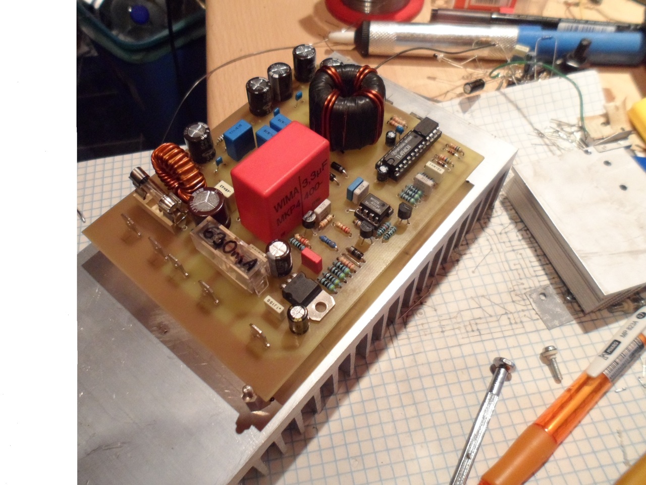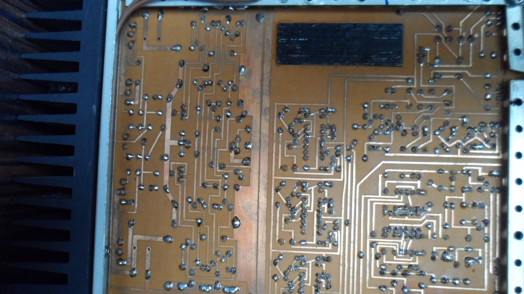 Itt az ígért fotók.. ez a saját erősítőm, még 1999 ben "jobb híján"bakelit nyákra készült.Az egészet számítógép és egyéb segédeszközök nélkül csináltam, és persze kézzel rajzolva. Még a trafó is kezeim munkája. Az alaplapja 42x22 cm az előlap panel pedig 42x9,5 cm. Egy ellenállást anno aláméreteztem, ami kicsit megbarnította a nyákot, de ezt hamar észrevettem s orvosoltam. Azóta is napi használatban van! Szóval minden hozzá állás kérdése