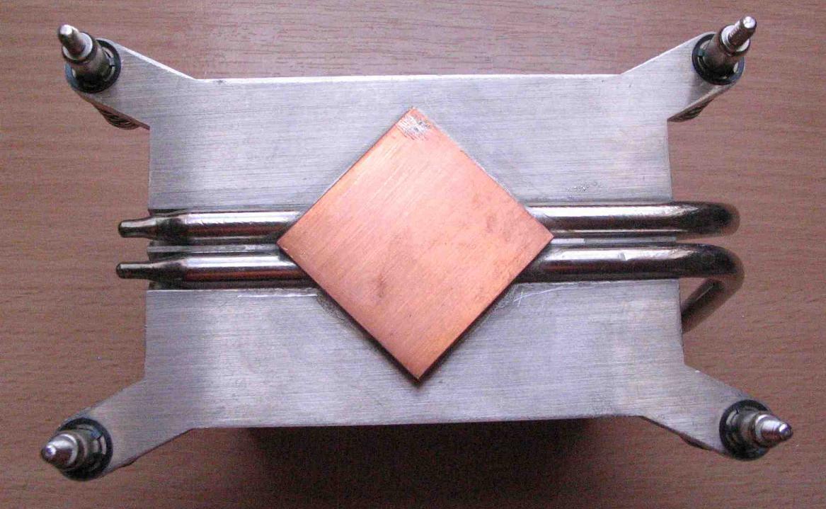 Közben eszembe jutott, hogy ősszel "kukáztam" egy egész jónak tűnő bordát, HP gépekbe szokták volt tenni, elvileg 120W-os fűtést is elbír. 5mm-es hőcsövek vannak benne, az alján 32x32mm-es és 5mm vastag réz tömb van.