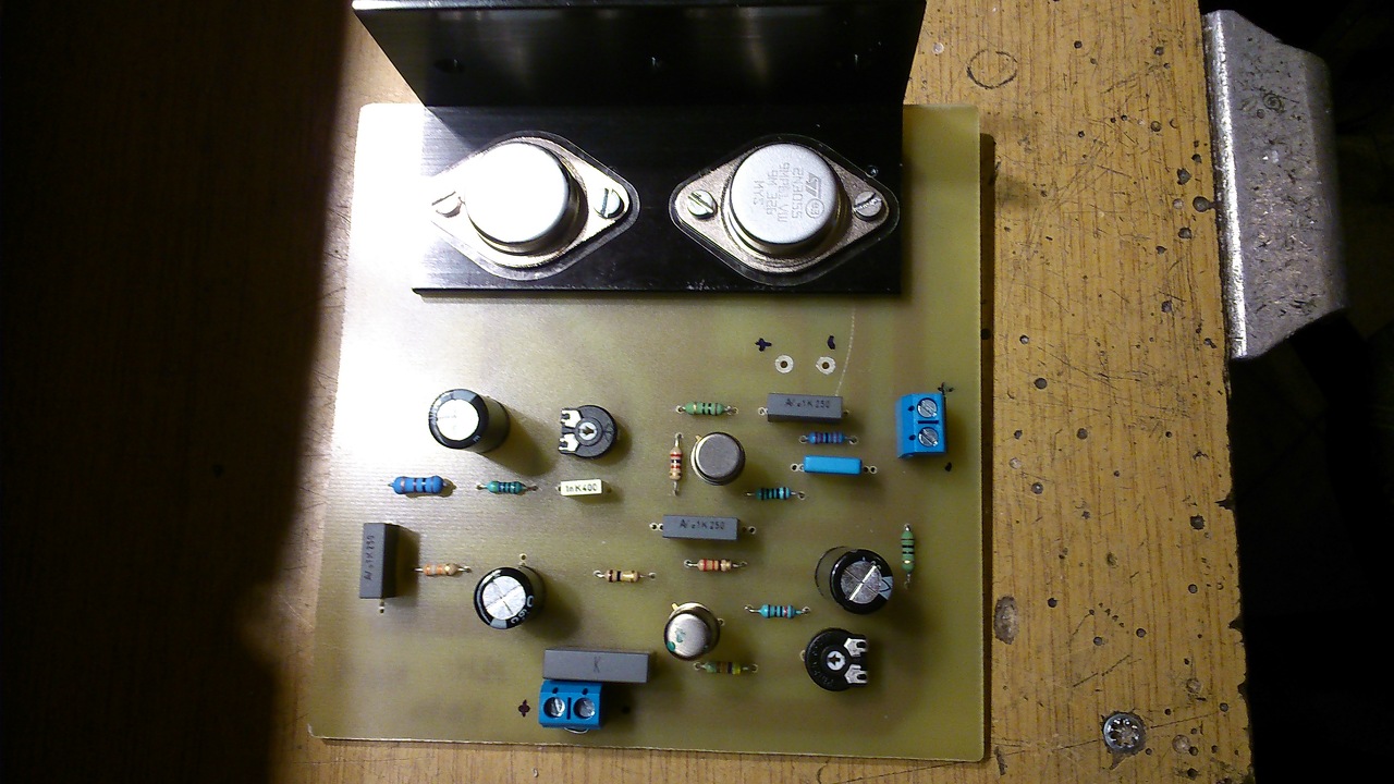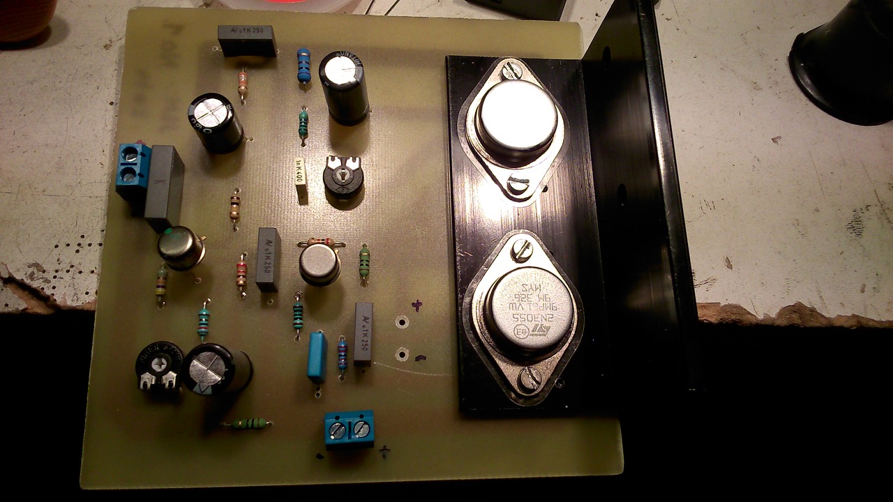 Elsőre labortáppal indítottam,így volt megoldható. 24V mellett ~0,7A tudtam beállítani,de majd cserélnem kell a 470-es ellenállást kisebbre. Amúgy 30V környékére tervezem, 1.2A nyugalmival. A hangszórók 8Ohm-osak és a tranyókat még nem mértem, mert csak ideiglenes borda volt rajtuk. A felhasználásra szánt bordákat még méretre kell vágnom,csak még nincs 100%-osan kialakult dobozterv (bocsi a képek minőségéért, csak telefon van..) Sajnos nekem itthon nem sok szerszám áll rendelkezésemre, egyenlőre kedves párom édesapja türelmét élvezem, az ő műhelysarkában tudok alkalmanként bütykölni. Még csak most ismerkedem ezzel a hobbival, de úgy érzem hosszútávú kapcsolat lesz belőle A hozzászólás módosítva: Feb 23, 2014