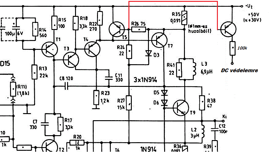 A védelemnek ez a része akkor van jól hangolva, ha semmilyen zenei jelre nem reagál. Skori kellően felkészült, rendkívüli tudású szakember, ezért szinte biztosan jól méretezett. A túlvezérlés semmiképpen sem egyenfeszültség. Ilyenkor az történik, hogy az egyébként szinuszforma teteje levágódik, és egy közel négyszöjel alakul ki. Aztán azon megint lehet töprengeni, a négyszögjel az váltaokzó feszültség-e, vagy időben gyorsan ki-be kapcsolt egyenfeszültség, de ennek nem sok értelme van most itt. A DC védelem 1-2 másodpercig jelen lévő egyenszint esetén avatkozik be. Azért itt, mert ezt még a hangszóró elviseli, de már messze alatta van bármilyen zene jelnek.