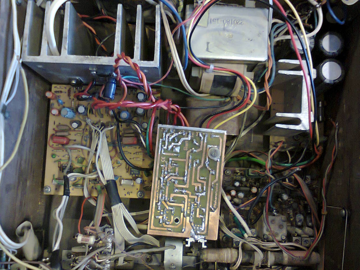 A mellékletben látható cucc egy saját építésű "asztali" rádiós erősítő. Volt dilemma hová helyezzem. A "kopigátló" felett egy lemezen a 2x 12ledes kivezérlésjelző van elhelyezve, tehát alig volt helyem.