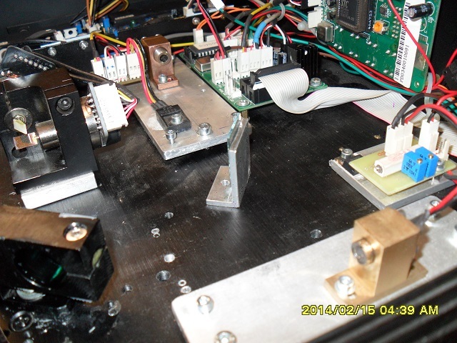 Kipróbáltam egy HDD szedőfejet, fénykorában egy WD 500 gb green-ben teljesített szolgálatot. Az ellenállása 11,5 ohm. A hosszú karokat eltávolítottam. A gyári szalagkábelt meghagytam, ennél jobb hozzávezetést úgysem tudnék gyártani. A nyugalmi helyzetbe (parkolás) a fejet az alu részbe ragasztott acél tüske húzza. Ezt eltávolítva könnyebben mozog. Már 1-1.5 V vezérlés elegendő, 5 mA körül megmoccan. Megmérném a sebességét "galvóként" de nem jövök rá, hogy tudnék elhelyezni fotódiódát. A középállást egy állandó stabil kis árammal lehetne megoldani. Ettől függetlenül optikai útválasztónak még ideális lehet, valami TTL meghajtással.