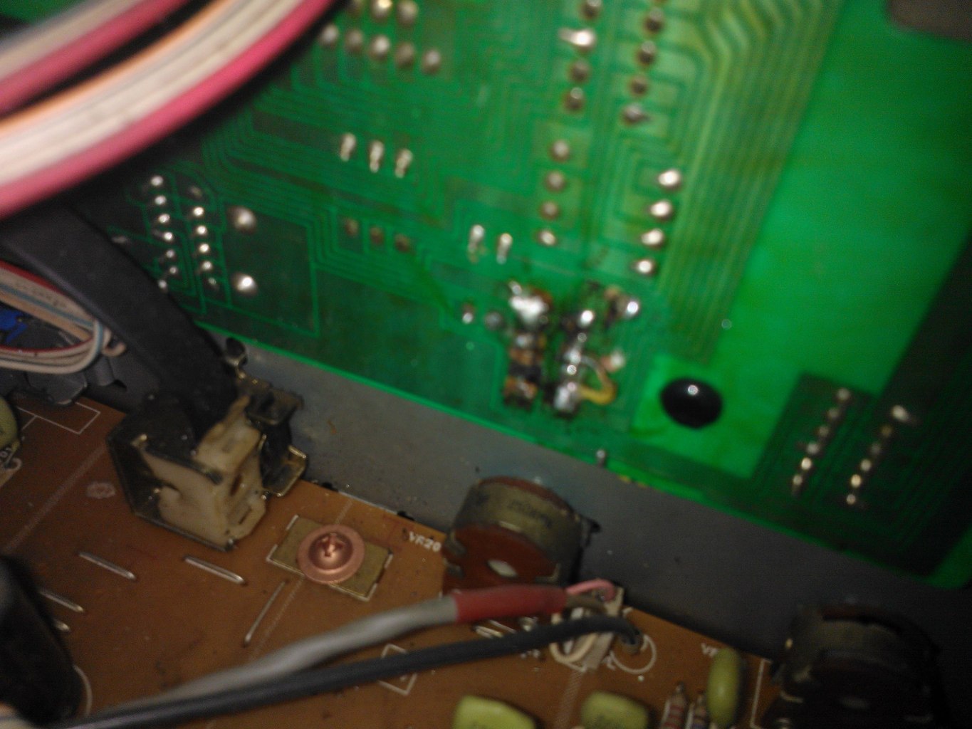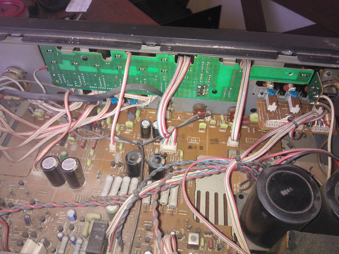 Sziasztok! Segítséget szeretnék kérni! Az egyik cimborámnak van egy beteg Blaupunkt MA-5850 erősítője. A "DIRECT"-gombnál bele van gányolva,amint a képeken látszódik.Azt szeretném kérdezni,hogy kapcsoló cserével,normális forrasztásokkal,a sérült,elégett áramkört szallag kábellal áthidalva helyre lehet-e állítani?