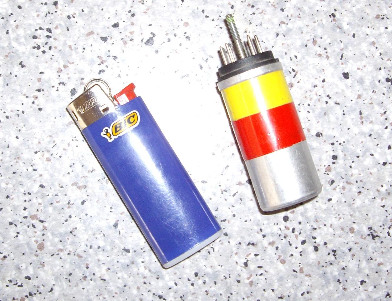 9 pin.-Novál foglalatba megy bele ..belseje műgyantával van kiöntve ...benne tranzisztorok , ellenállás ..stb.. Van belőle több is , csak a felragasztott ragasztószalag szinében külömböznek ...gondolom ez utal a belső müködésre..az öngyújtó csak a méretarány végett.. Minden segiséget és infót köszönök..