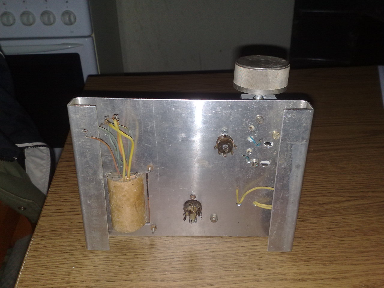 Összeraktam a rádiót indult is elsőre. Megpróbáltam a 16 ohm-mos hangszórót is de nagyon nagyon halk, a fülemhez tettem teljesen akkor hallatszott egy picit. Visszaraktam a telefonhallgatót úgy már jobban hallatszik. A tápegység 240 voltot ad a második pufferkondenzátornál. Üzem közben a potméter középső kivezetésénél 90-100 volt között mértem a digitális multiméterrel.