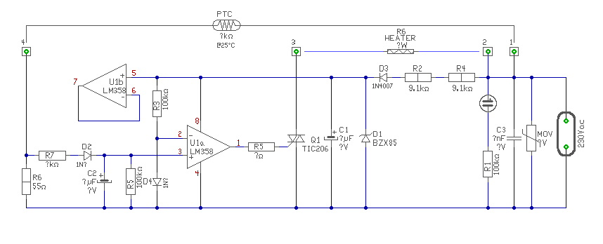 Hello! Én ugyan megrajzoltam, a feltételezett dolgokat is beírtam. De ebből nem lehet még kitalálni, hogy az R7 mekkora volt. Mert minimum azt kellene tudni, mekkora a PTC (gondolom az van benne) ellenállása, mikor épp jó meleg a ragasztó. De a D4-en eső feszültséget is tudni kellene (vagy hogy az tényleg egy 1N400x dióda-e). üdv!