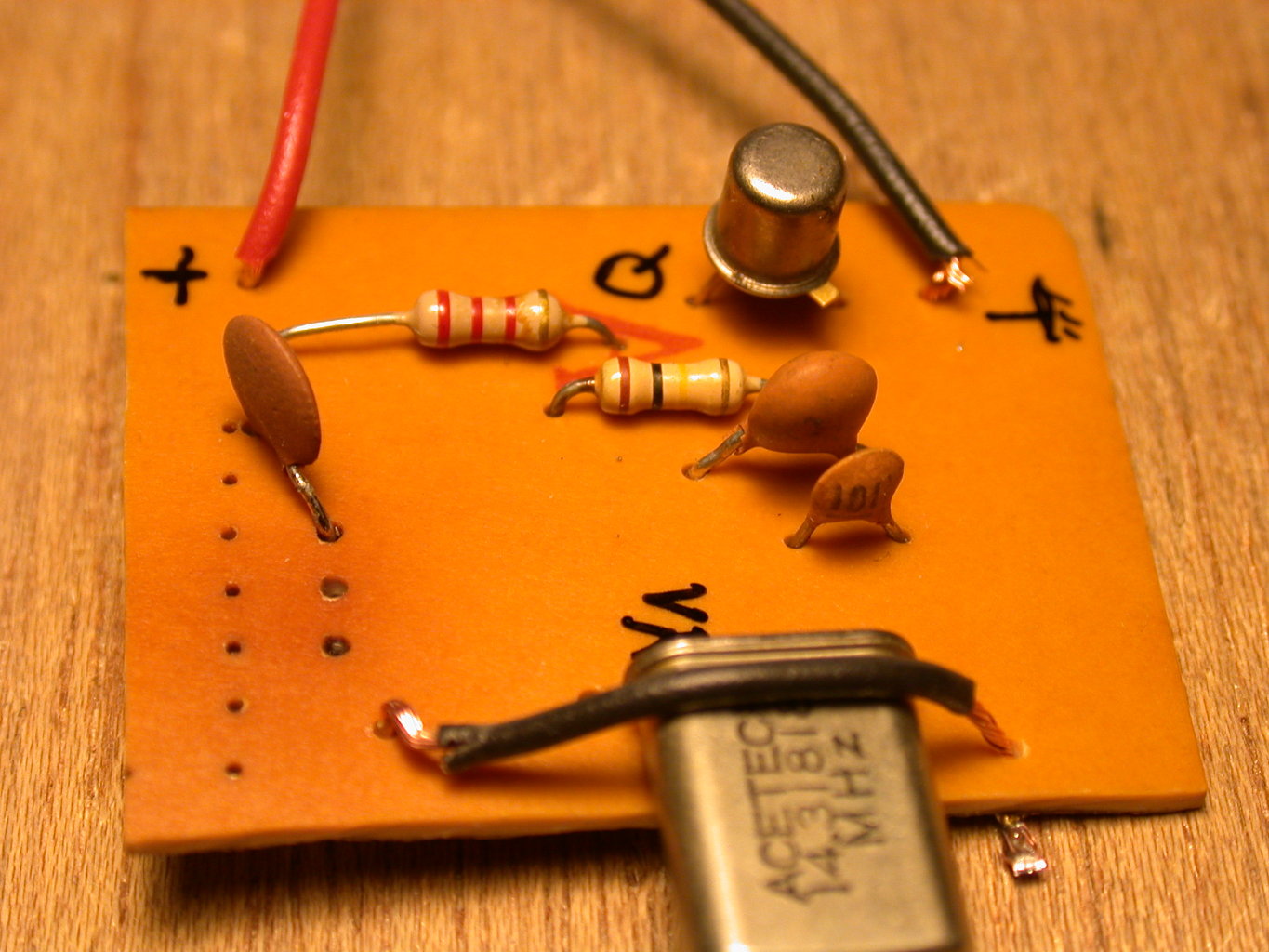 Készítettem egy igen egyszerű kristály oszcillátort amit a gyakorló vevő építésekor emlegettem pl. egy 3579KHz-s Kristállyal ha megépítitek erre rálehet hangolni a rádiót. Egyben ez egy igen alapfokú adó készülék is.