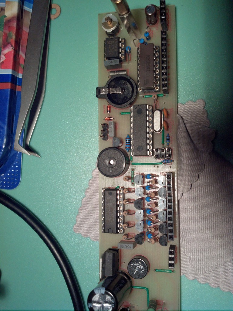 Az első órámnál van egy kis gondom az alávilágítással. Időnként az első és az utolsó három led kialszik, aztán egy idő után ismét világít. 3mm-es kék ledeket használtam, hármasával sorbakötve. Próbátam már ledet cserélni, aztán most kicseréltem a komplett kijelző panelt, de a hiba nem szűnt meg. Gyanakodtam kontakthibára, ezért újra forrasztottam a ledek tranzisztorát, meg az oda tartozó ellenállásokat, de a jelenség nem múlt el. Egy ötletem van még, hogy a potméter gyári hibás, de most nincs másik példányom, hogy ellenőrizzem az elméletemet. Normálisan 7,68V jut egy-egy hármas csoportra, de amikor nem világítanak, még nem tudtam megmérni. Esetleg milyen gond lehet még?