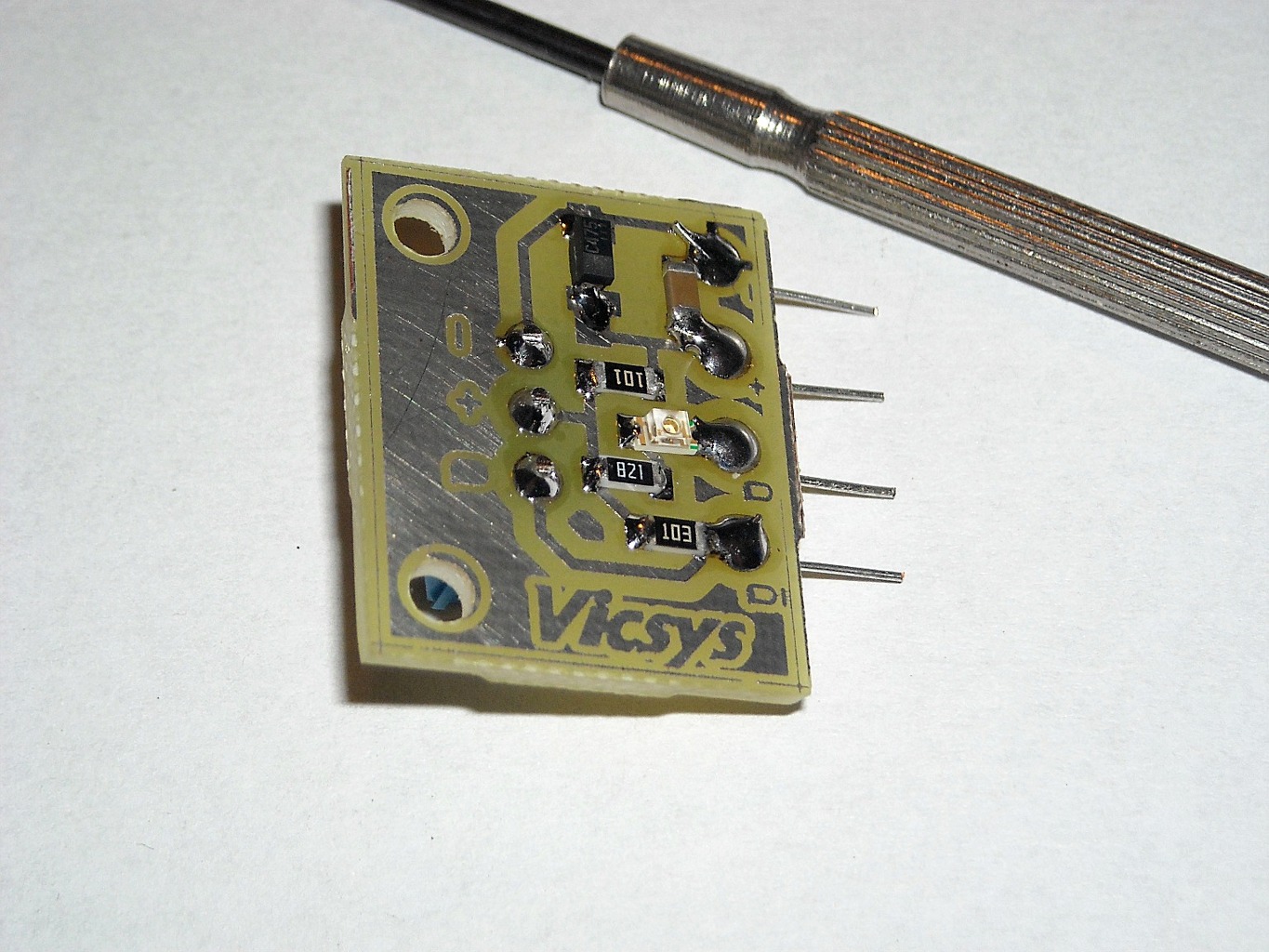 Közben megmutatom a DCF-es öcsipanelomat. Szerepe a tápszűrés és a ledes iránykeresés. Tartalmazza még a megadott felhúzó ellenállást is és egy csokit a gyors csatlakoztatáshoz.