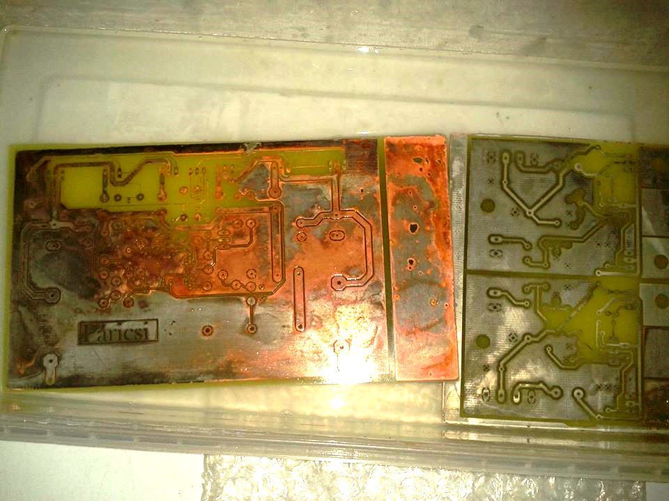 Gondoltam bemártom a kész nyákokat kémiai ónozóba. A jobb oldalsó még csak-csak kinéz valahogy, de a bal... Az rozsdás vagy milyen? Először az is szürke volt, vagyis foltokban. Most már a szürke is pirosas.