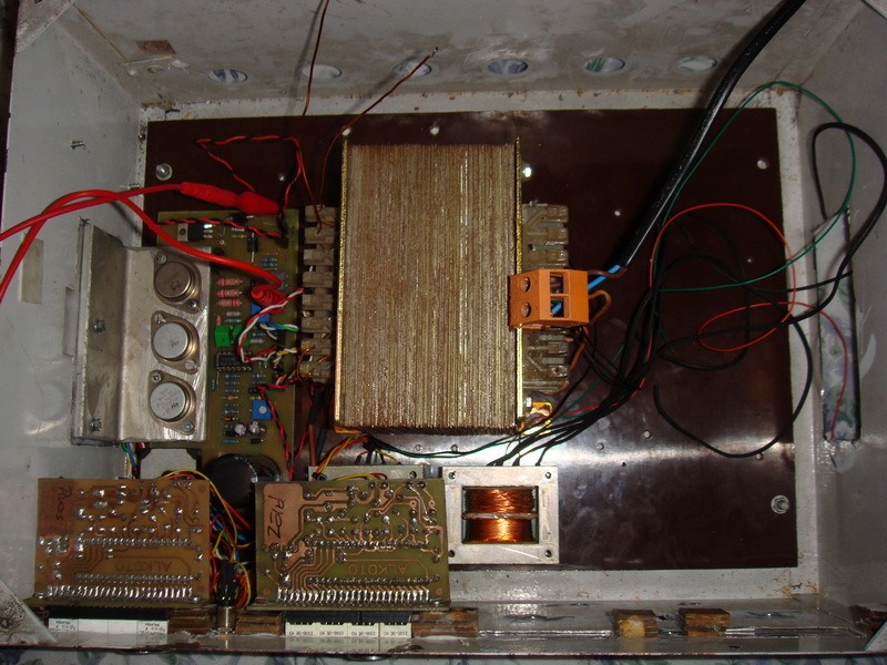 Gratulálok, a szülés időben megtörtént! A trafó, a drótkefén kívül egy kis festéket megérdemelt volna, ha már úgysem látszik belül . Szép a doboz, a hűtőborda; két nagyobb tekerőt majd küldök, úgy jobban lehet érzékelni a beállítást.