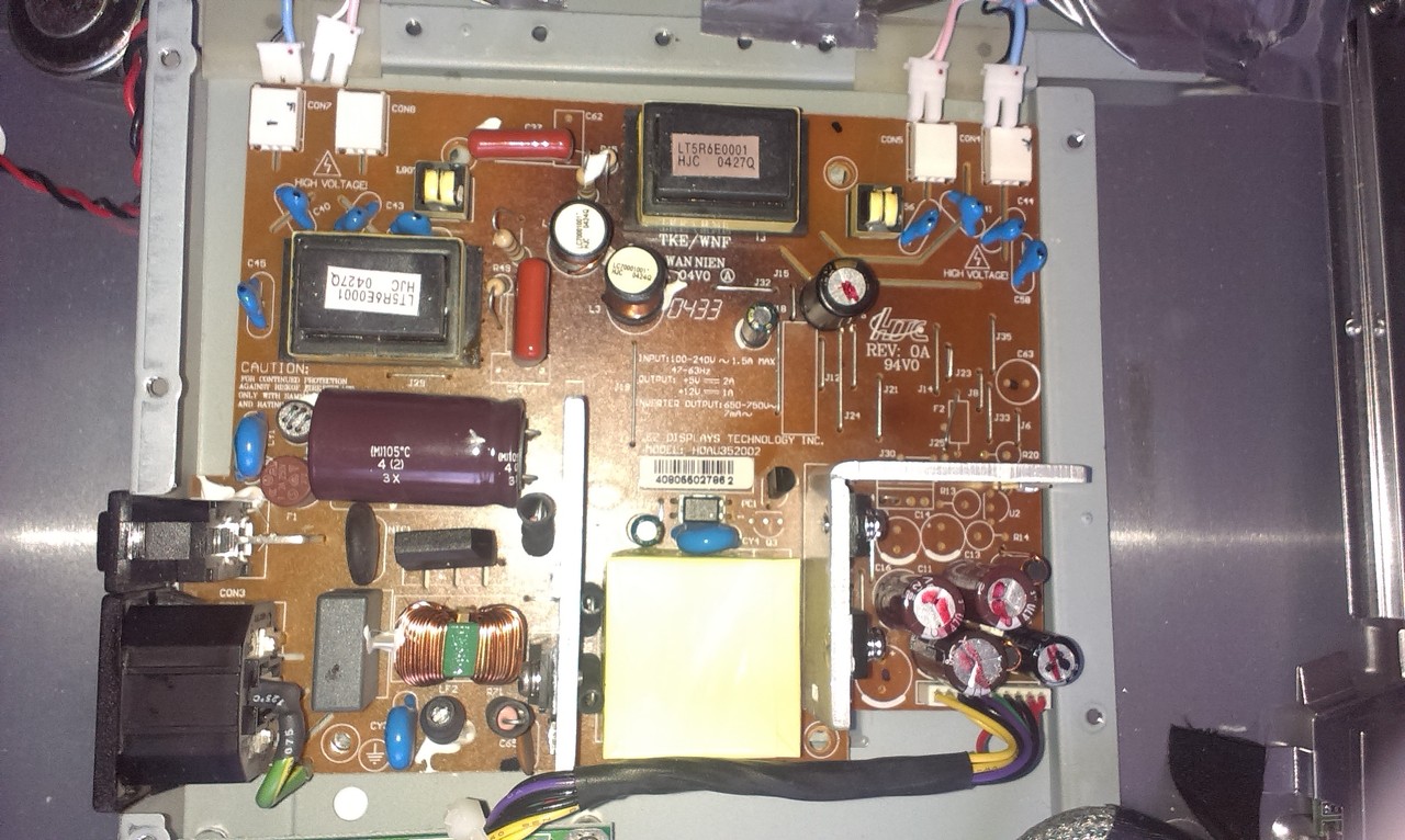Köszönöm a segítséget. Kerestem bele a nagy puffer kondi helyett másikat, ezért azt is kicseréltem. Valamint a teljes panelt újraforrasztottam, mert elég csúnyák voltak már a gyári forrasztások. Este így már beindult a monitor, csak burkolat nélkül kicsit idegesítő a trafók cicergése. Kicsit hangosabb az átlagosnál.