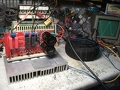 Ránézésre nagyon gusztusos , nem kézi forrasztású profi kidolgozású a holmi. Egy dolgon vigyorogtam, a bemeneti csatoló kondi WIMA feliratos, de egyértelműen saját hamisítvány - persze ettől még lehet jó. A mérések is ezt bizonyítják, elsőre indult mindkét csatorna. A beépített kis sil tokos ic inétzi a bekapcsolási késleltetést, és a kimeneti táp figyelését. Mindkét funkció működik szépen. Én a végfokot egy sztereo keyboard kombóba (hangszer erősítő) szánom, szerintem bőven elég lesz . A tápfeszem 2x23V váltó, a csatlakozókon 2x24V felirat olvasható. Ebből nálam 8 Ohmon 31V jön ki anélkül hogy beütné a fejét a jel. Ez 120W szinusz műterhelésen. Mikor klippel, teljesen szimmetrikusan teszi. Hanggenerátorom 18 Hz-től indul és 30kHz-ig megy. Ebben a tartományban teljesen lineáris az átvitel mindkét csatornán.. A maximális kivezérléshez pontosan 500mV bemenő jel szükséges. A fotón látható trafó 220VA-es, ami elvileg kicsit alulméretezett ide, de gyakorlatilag 2x50-70W-nál nagyobb jelet úgysem fogok folymatosan kivenni velőle. A háttérben látható kupit kéretik nem észrevenni ![]()