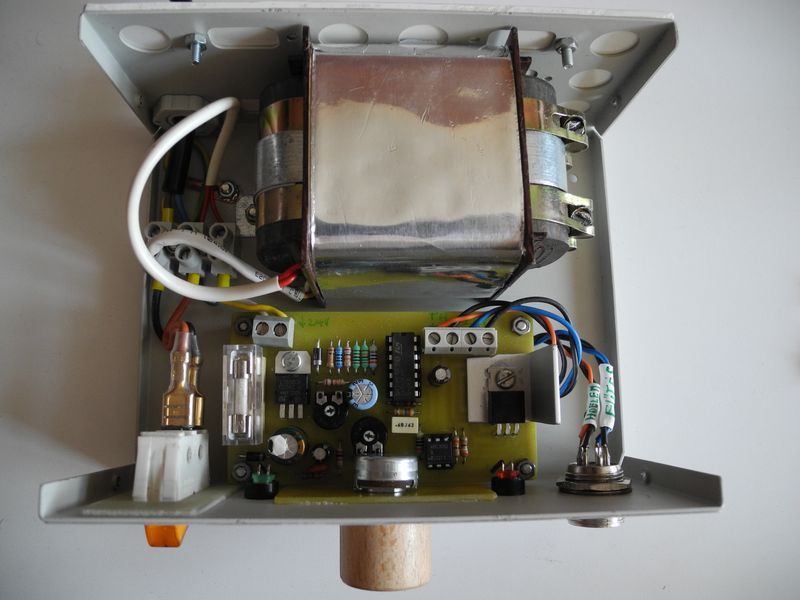 Azóta újracsináltam egy kicsit nagyobb verzióban, mert kicsinek bizonyúlt a trafó, az új ebbe nem fért már bele. A fedélnek szerencsére van egy alsó része is így már elég nagy lesz a doboz. Egy régi elkon gázelemző doboza volt. Ha végesztem vele majd rakok fel képeket.