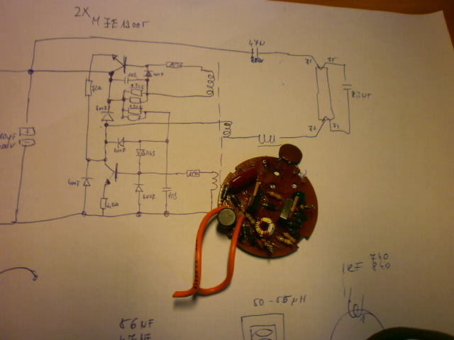 Szia Addig míg beszerzem az alkatrészt,nekifogok a tápnak.Van egy 16w os égő elektronika amiben MJE13005 tip tranzisztor van,a képen talán látszik.Vissza rajzoltam a áramkört,hová kel kötni a 47n kondikat és a nagy trafót.A képen már hiányzik a 10mikros kondi és a fojtó,azt vettem ki.A tranzisztorok helyett mehetnek a fet ek?köszönöm a válaszodat