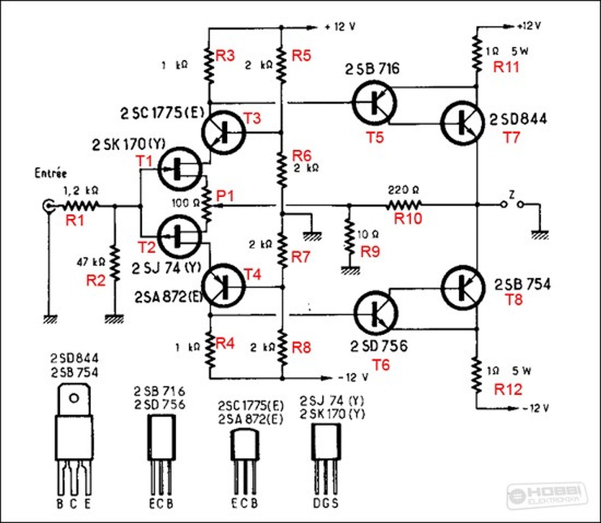 Hát pl így. A rajz hibás rakok fel egy javított ábrát. V- fettel nem lehet az megoldani amit a Moss fettel hogy eltüntetjük a nagyobb meghajtó tranzisztorokat.Ugyan is nem lehet ezt a MOSFET véget egyszerűen helyettesíteni V-FET -el, az ellenkező vezérlési/működési elv miatt.
