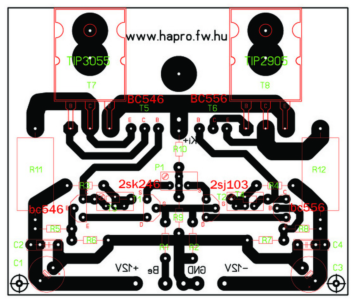 Szia! A T3,4 kicsit távolabb esik a furatoktól, de szerintem egyértelmű. A T5,6 lábait majd el kell csavargatnod az ECB jelölésnek megfelelően. Kicsit még nagyítottam rajta, de a cikk pdf-et tetszőlegesen növelheted.