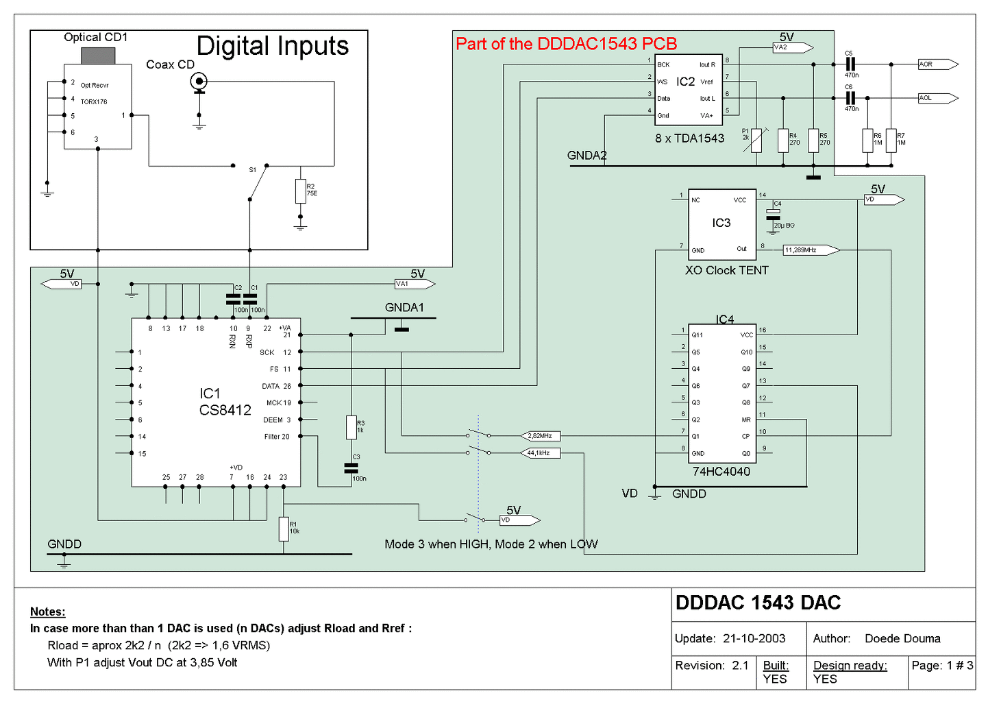 Nekem is lesz mit fejleszteni még DAC területen, rengeteg ötletem van, csak idő és hát pénz kérdése az egész. Ezekkel a non oversampling dac-kal nagyon jó eredményt lehet elérni egyszerű módszerrel is. Kis módosítással megoldható a reclocking eljárás, érdemes kipróbálni a kapcsolást, sokat hoz hangzásban. A kb. 150 pS értékű jittert néhány pS-re csökkenti, evvel együtt sokkal tisztább, életszerűbb hangzást lehet elérni. A rajzon a 1543 helyett a 1541 ugyanúgy használható.