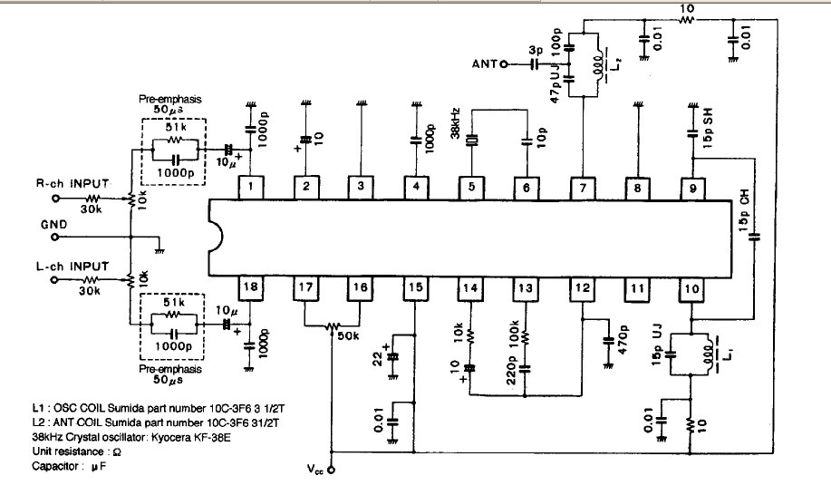 Mellékelek pár kapcsolást, ami tutira működik, mert már régebben megépítettem. Az adó kb: 2km hatótávolságú, egy dipól antennával. Van még hozzá sztereo kóder, rds kóder, PLL is.