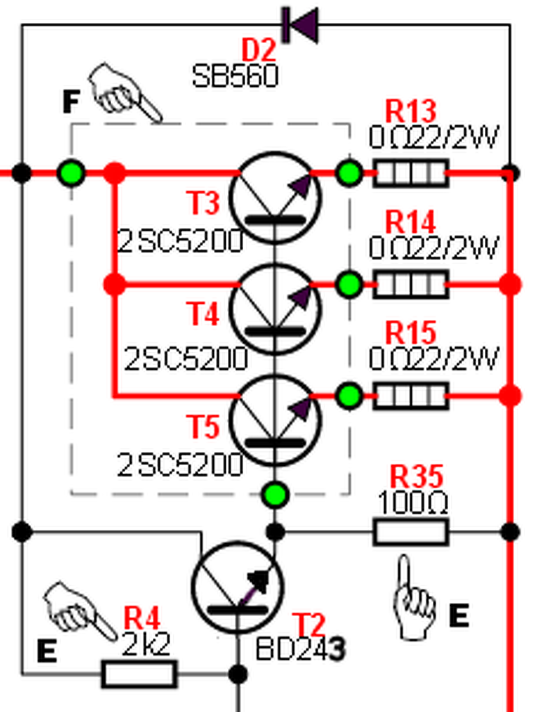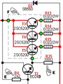 Monster02 Ha megkérhetlek és időd engedi nagyjából megrajzolnád hogyan vitelezzem ki a módosítást. Nem teljesen látom át mert a 2 kapcsolási rajzban teljesen máshogy vannak a BC337-esek elhelyezve.