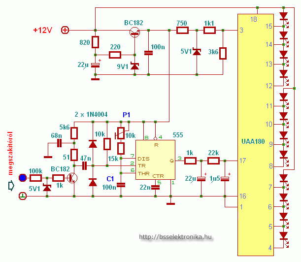 - Az áramkörben az 555 egy frekvencia-feszültség átalakítót alkot. Az 555 egy állandó impulzus szélességű monostabil multi, mely kimeneti impulzusainak sűrűsége változik a frekvencia (fordulat) függvényébe.