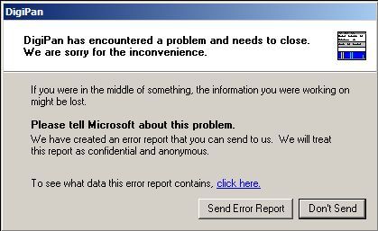 Before installing any new version of DigiPan, or reinstalling an older one, first quit any running version of DigiPan, locate digipan.ini in the Windows directory (folder), delete digipan.ini, and then install DigiPan. You can also follow this procedure if DigiPan does not seem to be working correctly anymore. After any reinstallation, you will have to re-configure your personal data and any custom macros.