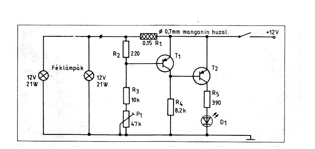 A kérdésem hogy:kb mekkora ellenállással kezdjek el kísérletezni ha 12 V-van és 1,5-2 A felett kéne hogy jelezzen (tehát 20W) ,tehát a kérdést megfordítva :milyen feszültség különbségen fog nyitni a tranyó (mert egy átlag diódán 0,6-0,8 V esik)?