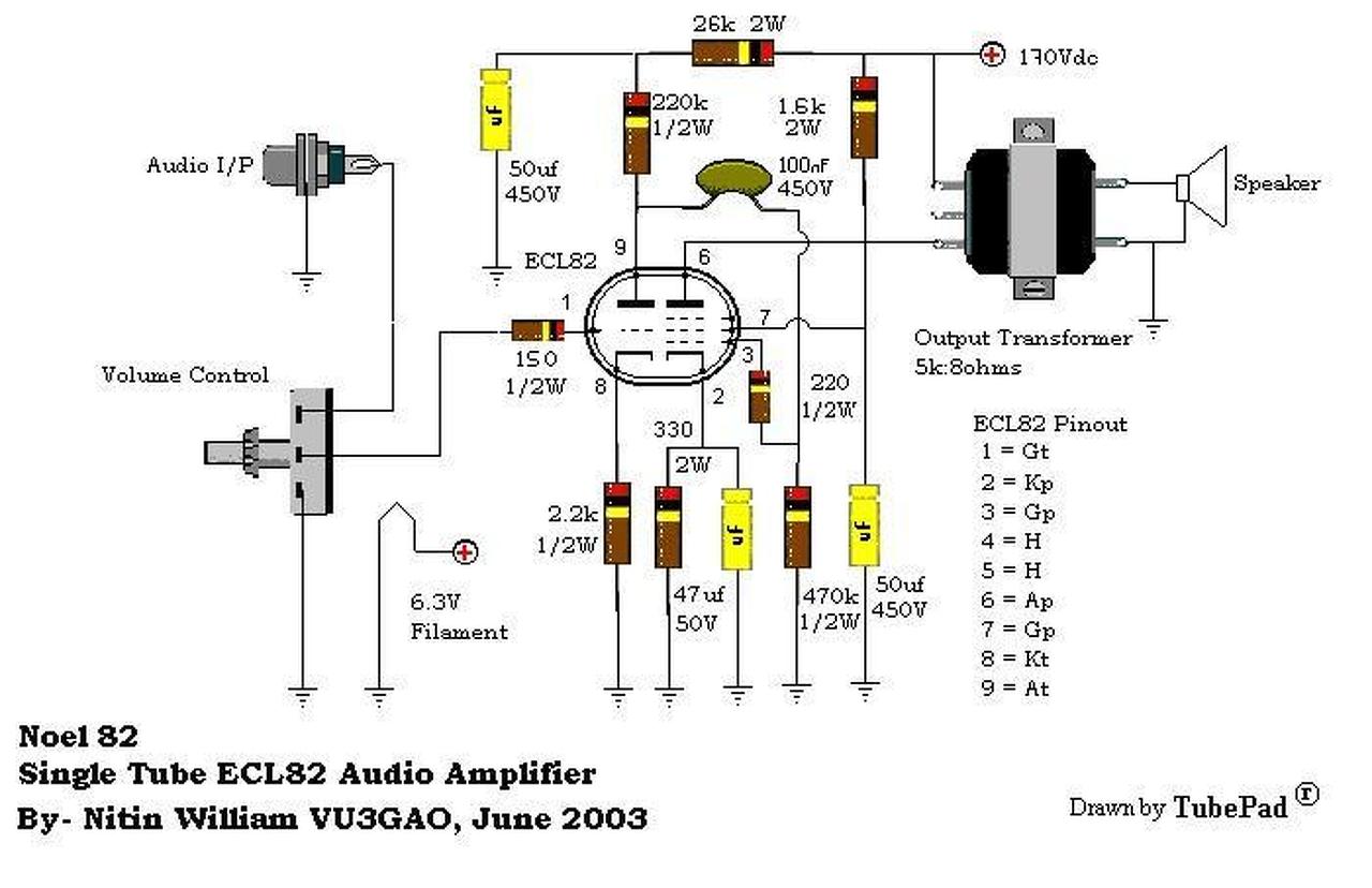 Hali. Nekiáltam egy ujabb erősítő építésének és azt kérdezném így működőképes a dolog? 1-2 Értéket megváltoztattam arra ami itthon volt,a tápot jómagam fabrikáltam 170V pufferelve 400µF-al,szűrve 100nF-os kondenzátorral. Kimenőből van egy ami PCL86-osé volt. Meg van egy öregebb ami egy rádióé volt. Majd kikísérletezem meik hozzá az igazi. Csak annyi kérdésem volna így megfelel a rajz? Működhet?