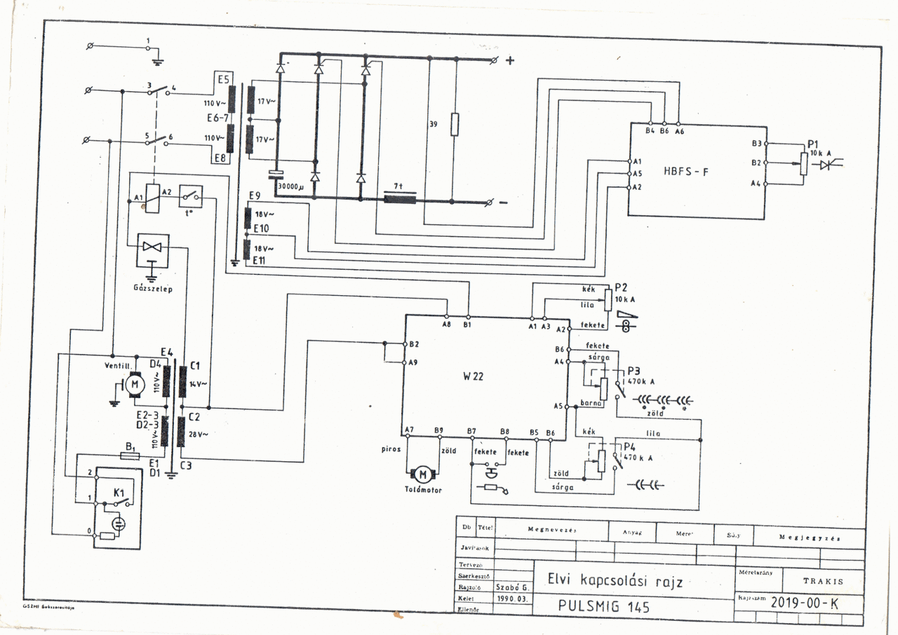 Szia mpisti.Lerajzoltam a pulsmig 145 hegesztönek a tirisztorok bekötését,ránéznél hogy ez igy rendben van-e,mert a vezérlö panel lekötése után is max teljesítménen dolgozik.A másik gyanus dolog hogy a rajzon a vezérlésen a "b6" van jelölve,de nekem a "b5"van bekötve.Köszi Zoli.