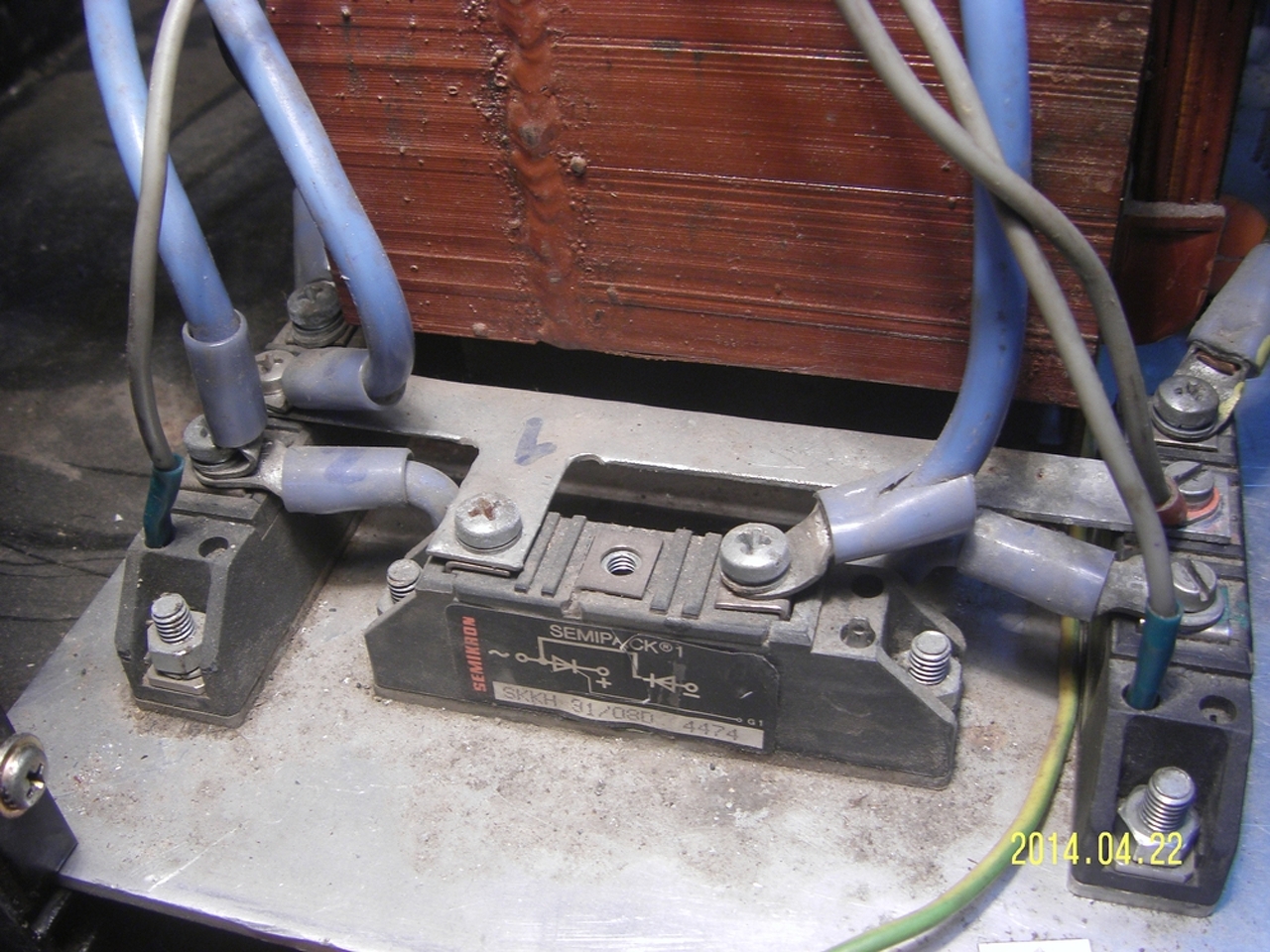 Igaz hogy 2 tirisztort használ,de valószinű,hogy a harmadik semikronnak a diódáját használja (ezért van ott a harmadik is).