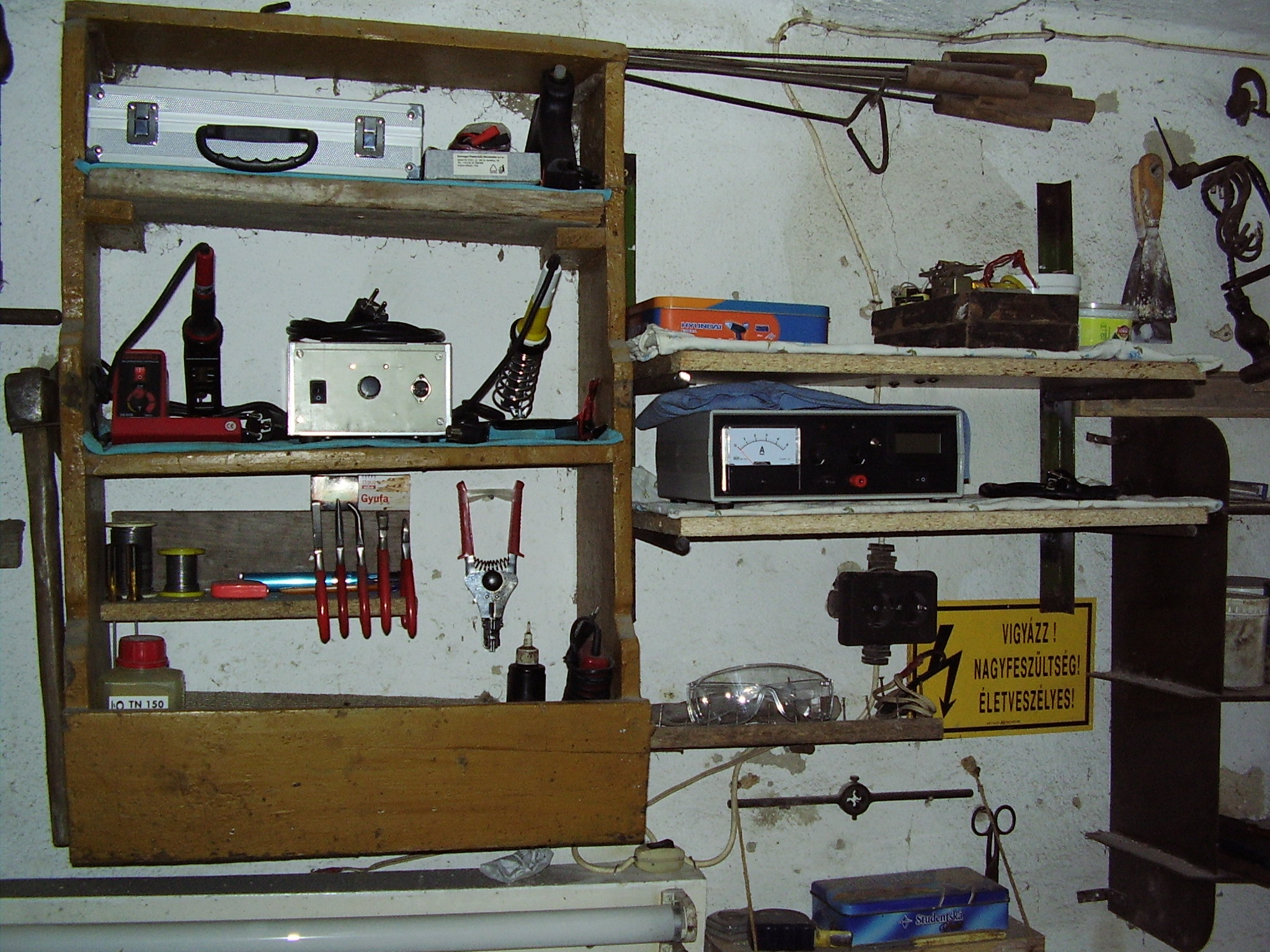 Én is felrakom már az én kis műhelyrészlegemet,habár ez n emcsak elektronikai műhely hanem egyéb dolgokat is itt szoktam csinálni(hegesztás,flexelés,egyebek) Nagyjából ezért van majdnem minden letakarva!!!! Igaz nekem egyenlőre még nincsenek nagy műszereim meg ilyenek,mivel még kezdő vagyok,de azért várom a véleményeket!!! Üdv!! |