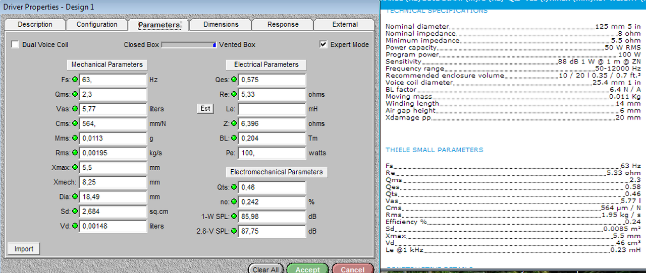 Ilyen paraméterek kellenek: QTS ;QMS ;QES; VAS; Re; Sd; Ezek a paraméterek könnyedén mérhetőek , és a hangolás is ellenőrizhető ezzel. A hozzászólás módosítva: Ápr 27, 2014