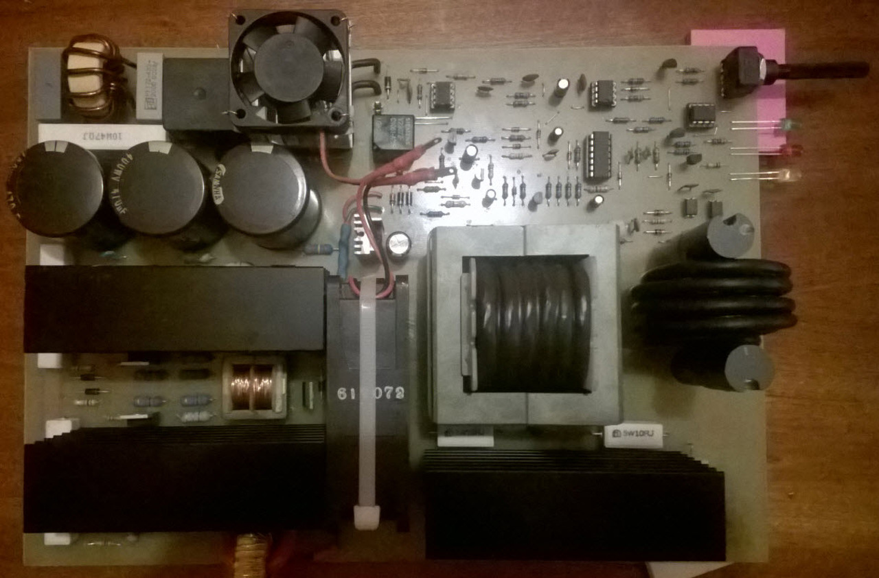 Kész lett a MMA TIG-es gépem is,mivel közben egy macit is összedobtam.Pár kép róla,bekapcsolt állapotba elfelejtettem lekapni,üresjárati fesz 80V,freki 50KHz.A nagyfesz gyujtás nem az erederi rajz szerinti,az is működik csak nekem volt egy javíthatatlan nagyfeszgyujtásos gépem és arra építettem rá a vezérlést.