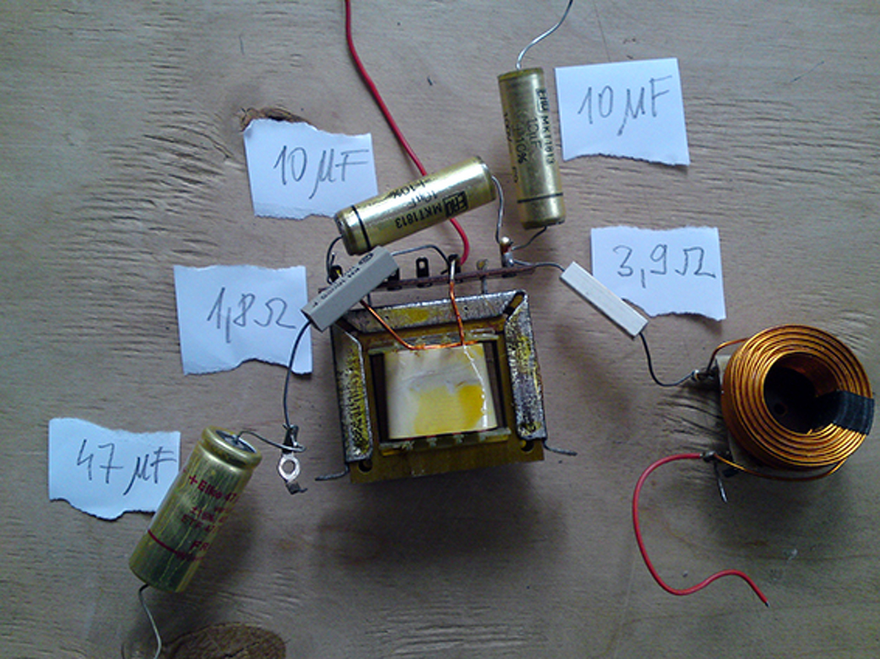 Én így próbálnám meg. Ha nagyon üvölt a magas akkor az 1.8 ohm kicserélhető a 3,9 ohm -ra vagy mindkettőt sorosan. Ellenkező esetben el lehet hagyni. Érdemes a magas polaritását megfordítva is meghallgatni. Ezekből ezt lehet.