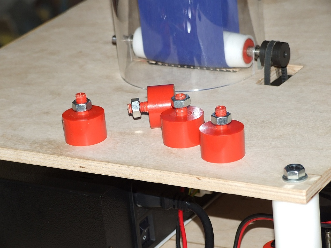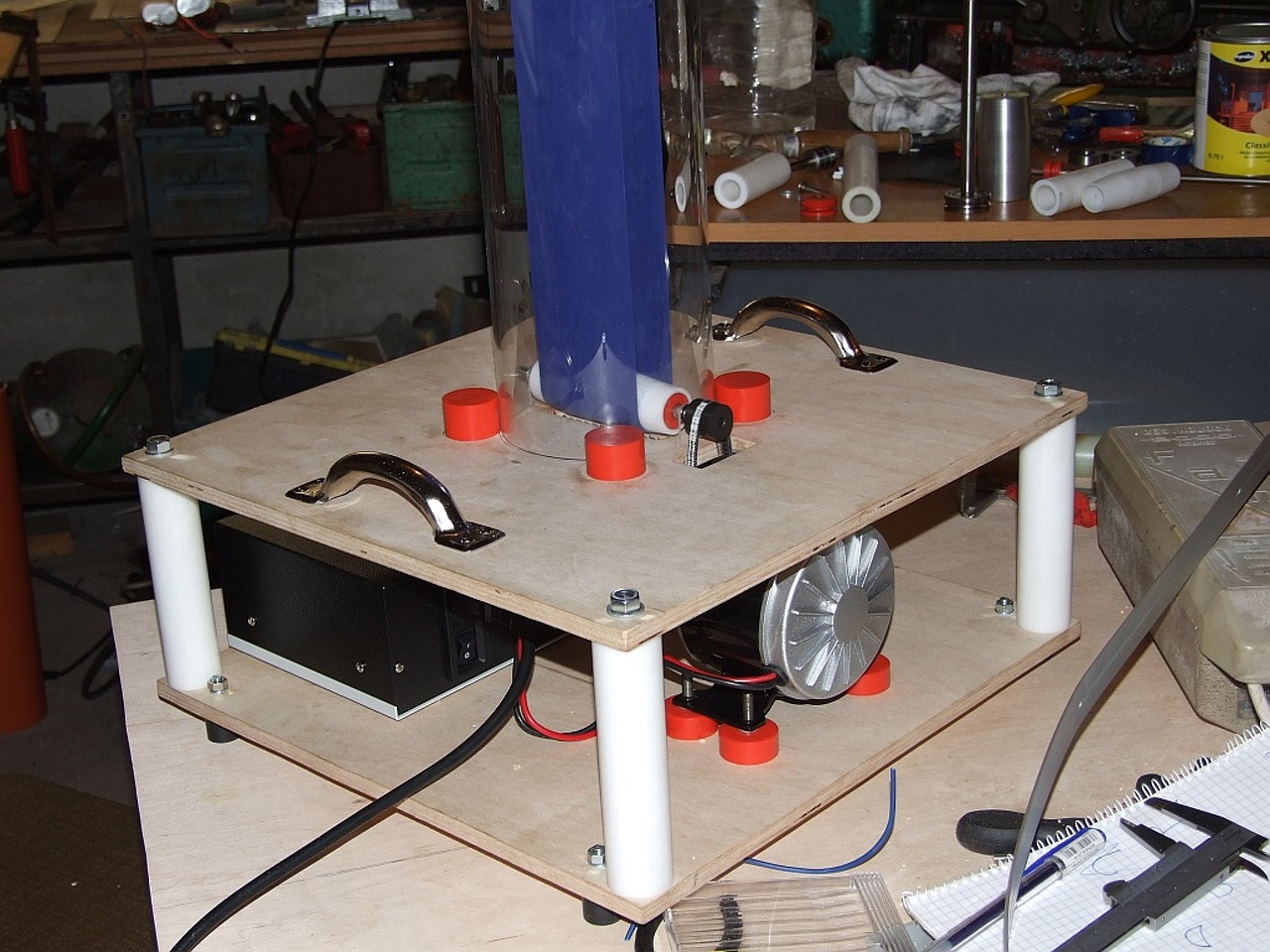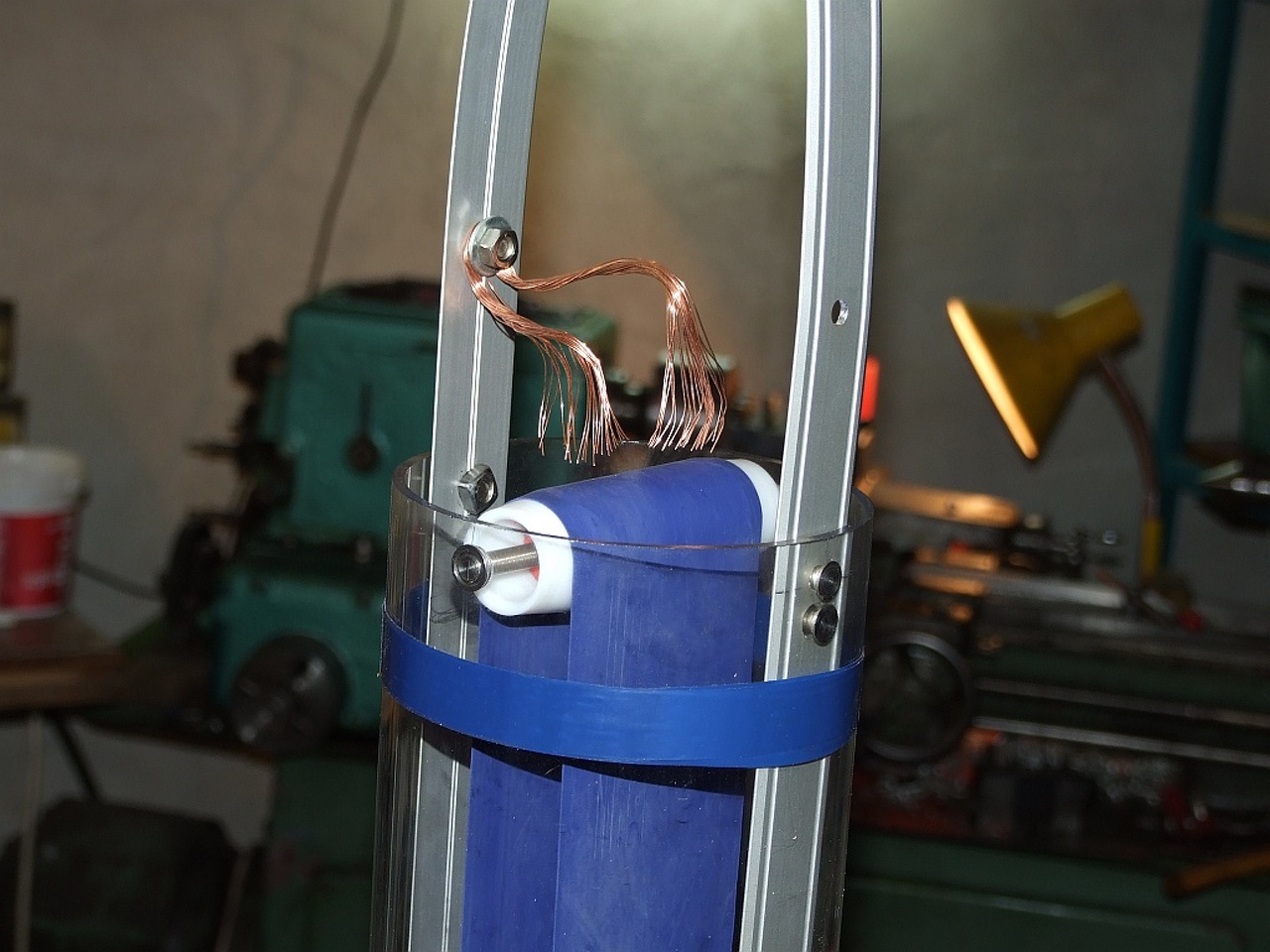 Gömb és környéke. Az állványt lakkozom, úgyhogy még nem tudom teljesen összerakni, viszont simán alsó fésű nélkül megpörgetve a görgőket simán éreztem fél méterről az arcomon a sztatikusságot a gömbtől, és 2 centis szikrák pattogtak a kezemre ha közelítettem hozzá. Nem is rossz ahhoz képest hogy a földelőfésű hiányzik, fincsi lesz alsó fésűvel és motorral hajtva. A lakkozással remélem végzek holnap utánra.
