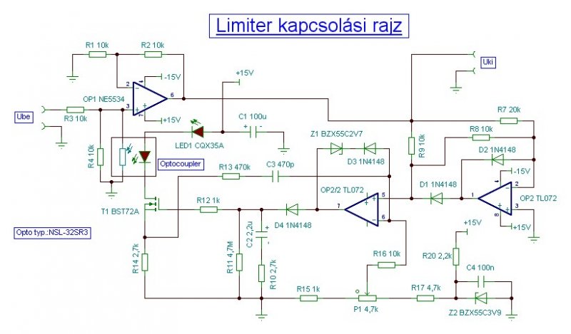 Viszont én bátran ajánlom a legutóbb felhozott limiter kapcsolást. Diszkrét elemekből(LDR-fényérzékeny ellenállásból és Vörös LED-ből )felépített optoval és pl BS170 FET-vel olyan de olyan szépen működik,hogy öröm hallgatni. Ráadásul sokkal egyszerűbb,mint amit mutattál.