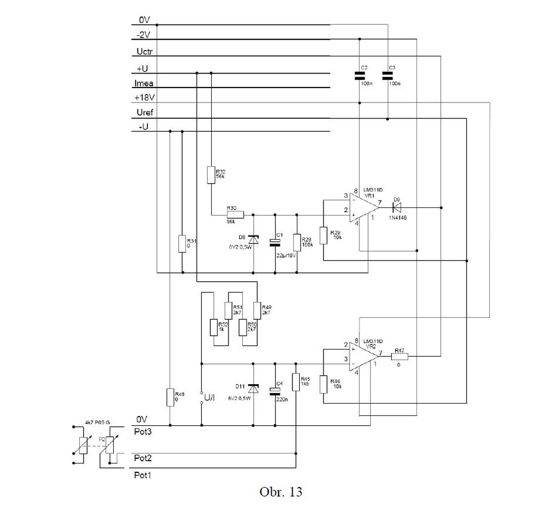 Vagy esetleg még volna egy olyan ötletem, hogy a teljes hidas gépből felhasználni az IGBT meghajtás, és az előbbi hozzászólásban csatolt rajzból meg a vezérlés. A csatolt képen nyíllal jelölt potit meg kicserélni egy ellenállásra és egy potira sorba kötve, így be lehetne állítani a feszültség minimumát és maximumát is. A 320DC körbe egy áramváltót amire lehetne egy segédelektronika ami az IC comparátor bemenetén, vagy esetleg ugyanazon a lábon ahol van a poti belenyúl a vezérlésbe ha túlságosan nagy áram kezdene folyni az IGBT-ken. Tolómotornak szerintem akár egy másik szekunder tekercs, de még a hegesztő szekunderből is lehetne csinálni meghajtást, akárcsak a szolenoidnak. Lényeg az, hogy a motornak olyan elektronika kell ami megállítja azonnal. Én itthon ezt egy relével oldottam meg úgy, hogy mikor elengedem a kapcsolót, akkor összezárja a motor kivezetéseit. Egyébként meg nagyon sok drótot kitolt magából megállítás után.