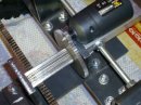 Maga a kormány mozgatás elég primitív, sajna ebből adódóan nem is proporcionális, ami elég nagy hiba, mert elég nagy a reakcióideje az adóhoz képest. A költségek: Természetesen a legdrágább az, amíg az első prototípust ki nem fejleszted....rengeteg eldobott ötlet, feleslegesen beszerzett alkatrész... A távirányító: Budapestre kellett felutaznom érte, lévén Kecskeméten(ahol lakok) nincs modell témával foglalkozó üzlet. Az ára 13000Ft volt. A kerekek darabja 2500FT. 4 darab van belőle. A rengeteg esztergályos munka kb. 30.000Ft. Csapágyak, csavarok stb...mondjuk 5000Ft Az alvázat a haverom munkahelyén vágtuk ki lézerrel. A benzintankot rendeltem Pestről, 1500ft. Most kap tárcsaféket, 5000. Persze ha most építenék egy ilyet, fele ennyiből kijönne, sok felesleges kiadást meg tudnék spórolni... Itt a kép kormányról...