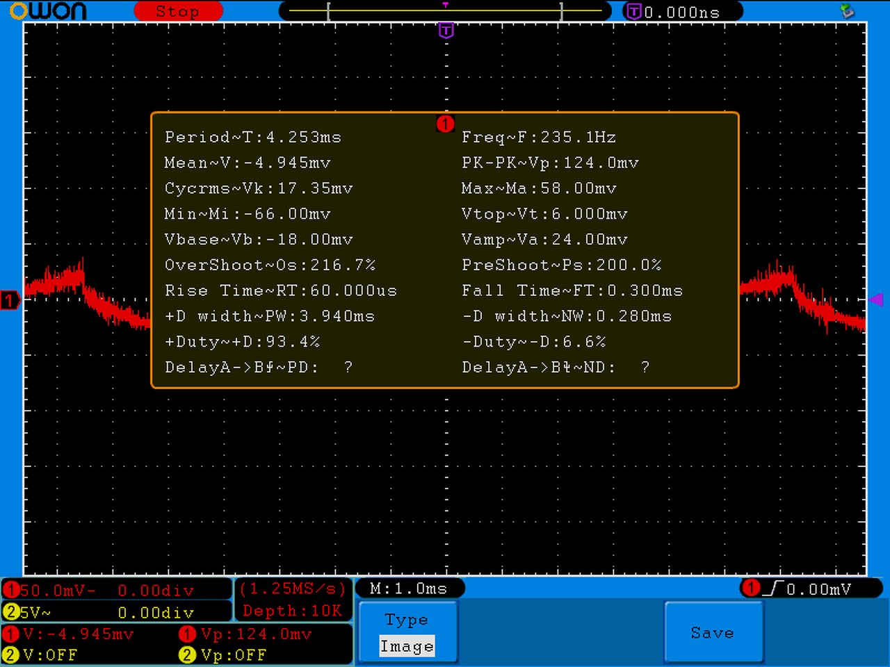 Ami a szkopot illeti az ugy néz ki, hogy komplett FFT analizist csinál, innen a sok érték. Méri az átlagot, a ciklikus szintet (a vizszintes idö intervallumában), méri a jel váltoáramu tartalmát ( zajt, brummot stb.) min-max értéket ( peak to peak), stb. Szoval a szkopon kapsz egy komplett analizist akár igy ilyen primitiv mérésre is. Vannak esetek ahol ez fontos, pl. erösitök tápja, de többnyire inkább zavaró.