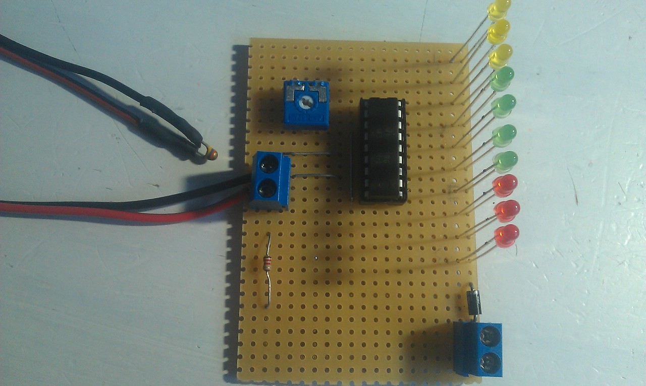 A berajzolt 100 ohm-os potival ez elérhető, mármint kb. 10°C pontossággal követni a LED-ek mellé írt skálát.