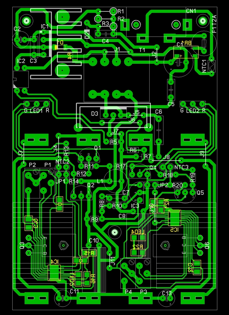 Egy akkutöltőt szeretnék építeni, amelyben egy dobozon belül foglal helyet egy kapcsolóüzemű tápegység és 2x2 akku töltésére alkalma áramkör. Helyhiány miatt elég sűrűre sikeredett a nyák. A tápegység primer részére kérném a véleményeteket. A hozzászólás módosítva: Márc 22, 2014