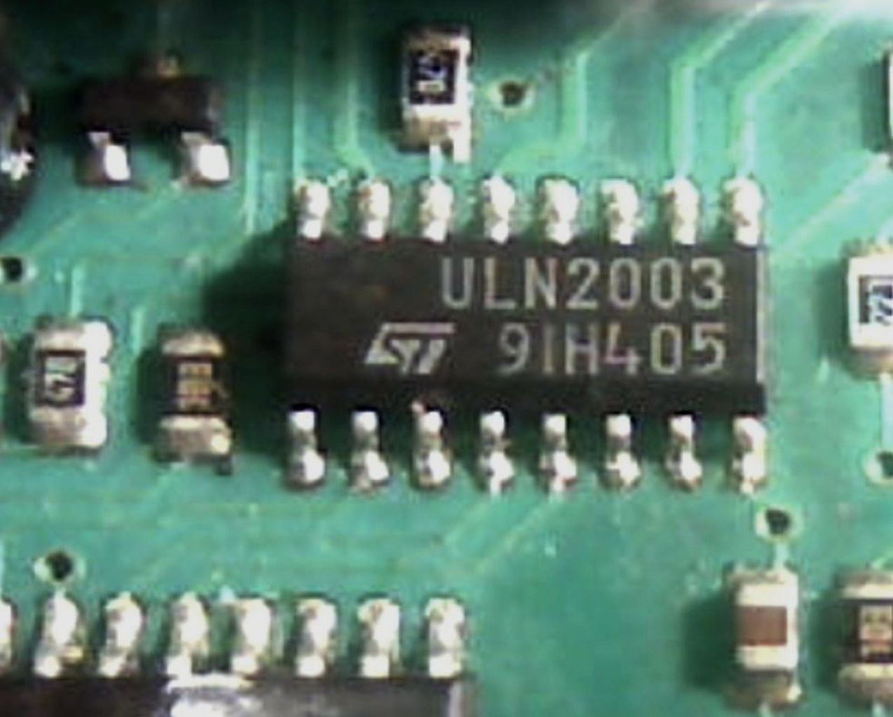 Elnézést a szünetért, most mennék le mérni, nem találom a ULN2003A IC-t, hol, mi mellett található? Hogy néz ki? Nagyítóval nézem, nem találom.
