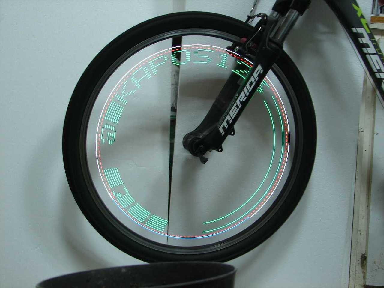 Ha a kerékpár kb 24km/h -vel megy és a kerék kerülete kb 2m, akkor 12000 fordulat / óra, azaz 200 fordulat / perc azaz 3.33 fordulat / sec. Ahhoz, hogy álló képet kapj, másodpercenként minimum 20 frissítés kell. Ezért mind a 4 ágnak ki kell rajzolnia a teljes képet és nagyon gyorsan kell tekerni... Ezekkel a paraméterekkel már 36 km/h sebességnél meglenne a 20 frissítés másodpercenként.