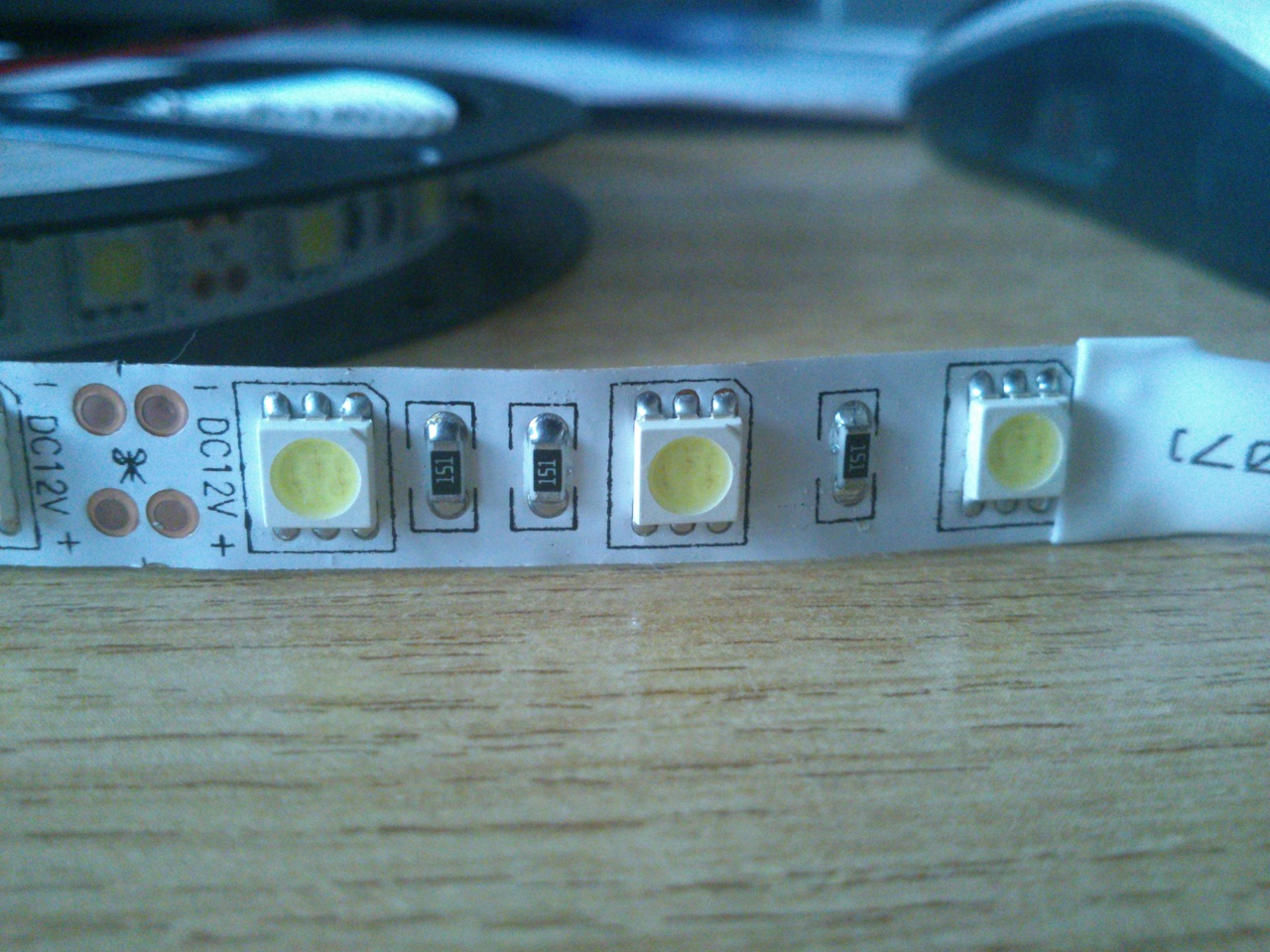 Minden egyes tokhoz tartozik egy ellenállás, azaz 300 darab van belőle. Sajnos egy elnevezésbeli gubanc, hogy LED-et emlegetünk, ha 5050 tokozásról van szó. A valóságban 3 elemi dióda van egy tokban. A hozzászólás módosítva: Máj 25, 2014